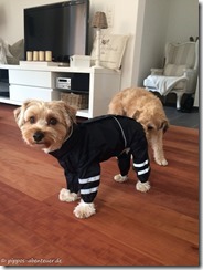 Hey Freunde, ist Eure Laune wegen dem Wetter auch so negativ? Momentan wird man ja immer doppelt nass, erst draußen uns danach drinnen (in der Dusche). Weil Fine ja so tiefgelegt ist und ihr Bauch dadurch immer extra schmutzig wird, hat Frauchen ihr eine Matschhose gekauft. Sieht irgendwie witzig aus, […]